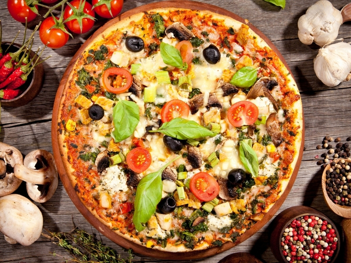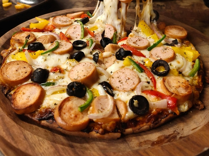 Domates sos, mozzarella, sebze çeşitleri, sucuk, biber, soğan ve mantar ile.