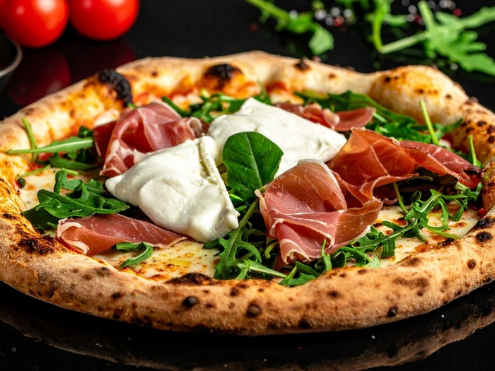 Domates sos, mozzarella, dana jambon ve mantar ile.